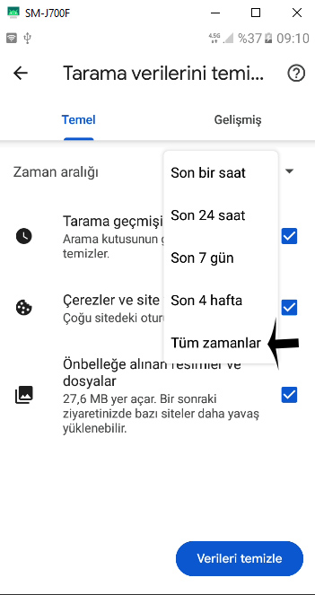 Yapılacak işlem : tarama verilerini temizle sayfasında Tarama geçmişi + çerezler ve önbelleğe alınan resimler ve dosyalar silinmesi yeterli. Şifrelerinizin silinmesine gerek yoktur.