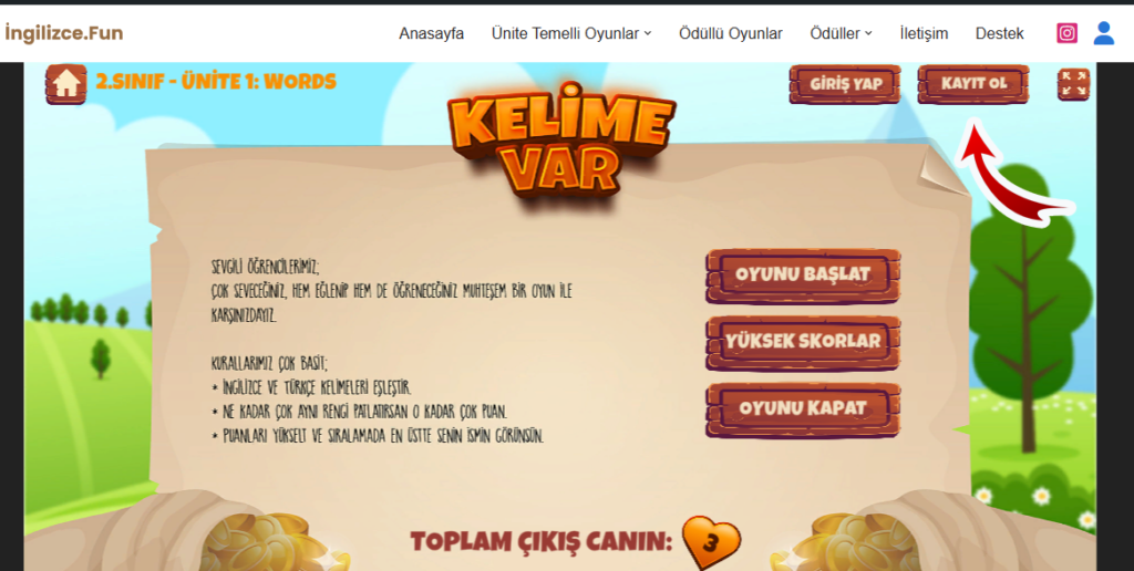 Kayıt Ol ekranına oyun açıldıktan sonra sağ üst köşeden ulaşabilirsiniz.